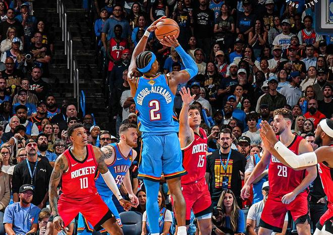 在比赛中,大个子球员在传球、卡位和篮板争夺中天然具备优势。小个子球员需要付出更多的努力才能抢到篮板,而对大个子而言,这几乎是常规操作。有观点认为雷霆上一场三分命中率不佳,但这或许与火箭“死亡五大”带来的体能消耗密切相关。雷霆球员在与火箭高大阵容的对抗中体力透支,导致外线手感下滑。此外,火箭的防守策略也限制了雷霆的空位三分机会,迫使对手在亚当斯镇守内线时寻找投篮空间。火箭之所以坚定使用“死亡五大”,与新秀谢泼德的状态密切相关。