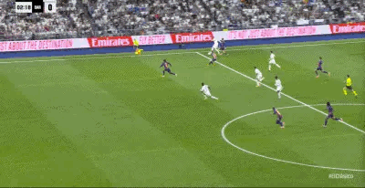 在第22分钟,姆巴佩接贝林厄姆直塞反越位单刀轻松破门,收获了个人国家德比的第6粒进球,完成了连续四场国家德比破门的成就,帮助皇马“终于”实现了领先;