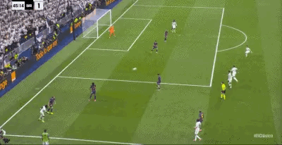 第45分钟,居莱尔轻巧挑传,姆巴佩门前补射得手,帮助皇马打入第“3”粒进球,边裁举旗示意姆巴佩在补射前处于越位位置,进球无效;