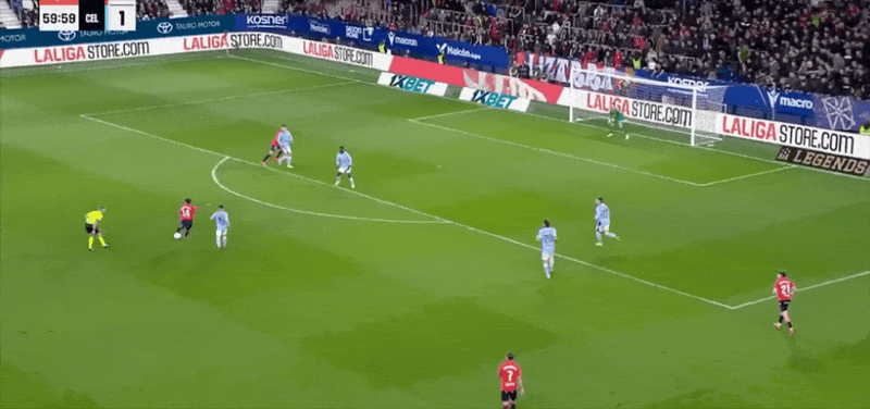下半场一开场,埃里克·加西亚在防守倒地铲球时手球犯规,主裁判索托选择再一次相信VAR,亲自回看并处以极刑,姆巴佩如愿以偿获得了点球。