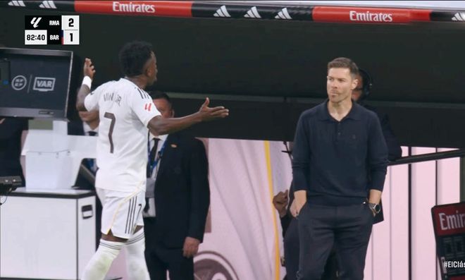 比分落后,但是又无人可换,成为巴塞罗那非常尴尬的现状。然而阿隆索做出换人时,也出现了尴尬的一幕,维尼修斯被罗德里戈换下,维尼修斯非常的不理解且恼火,怒吼阿隆索后直接回更衣室了!