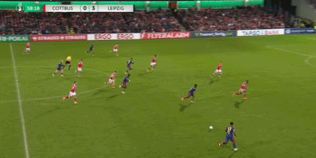 第13分钟,巴卡约科右路内切破门,莱比锡1-0科特布斯